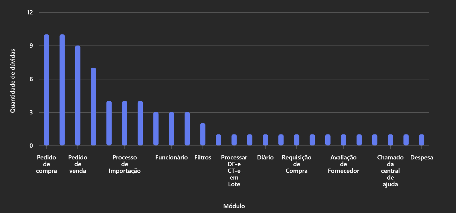 Este relatório tem como objetivo apresentar uma análise detalhada das 74 dúvidas registradas pelos usuários da empresa, com foco em identificar os principais pontos onde há necessidade de suporte adicional (✿◡‿◡) A partir dessa análise, buscamos compreender: